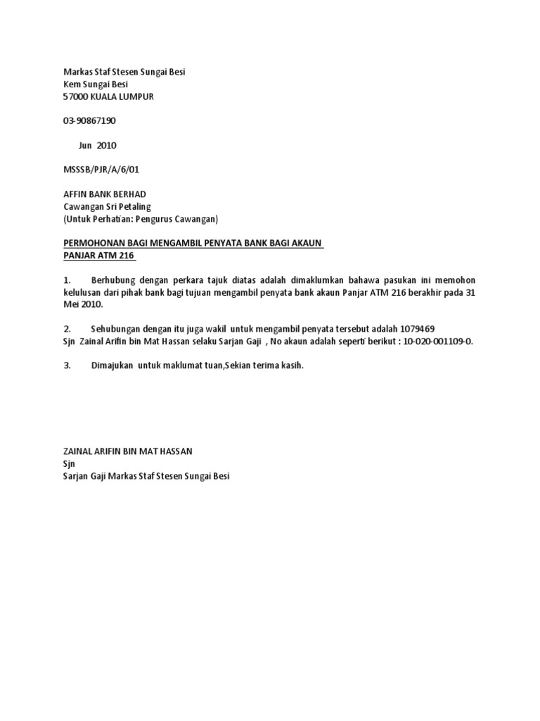 Contoh Surat Kebenaran Wakil Mengambil Dokumen Bank