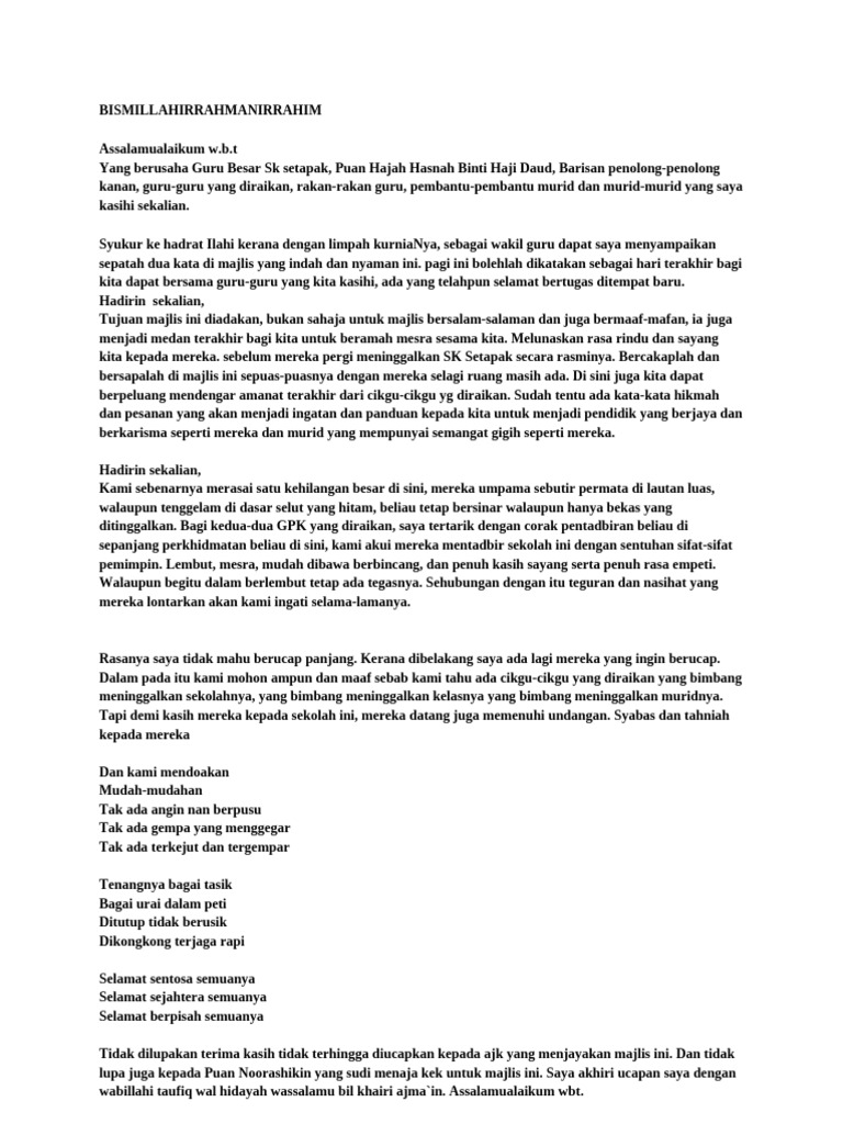 Doa Perpisahan Pengetua Doc Document