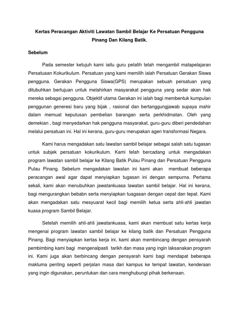 Kertas Peracangan Aktiviti Lawatan Sambil Belajar Ke Persatuan Pengguna Pinang Dan Kilang Batik