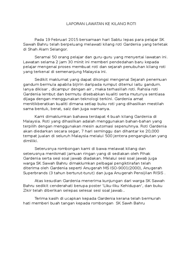 Karangan Laporan Lawatan Sambil Belajar Dan Berita
