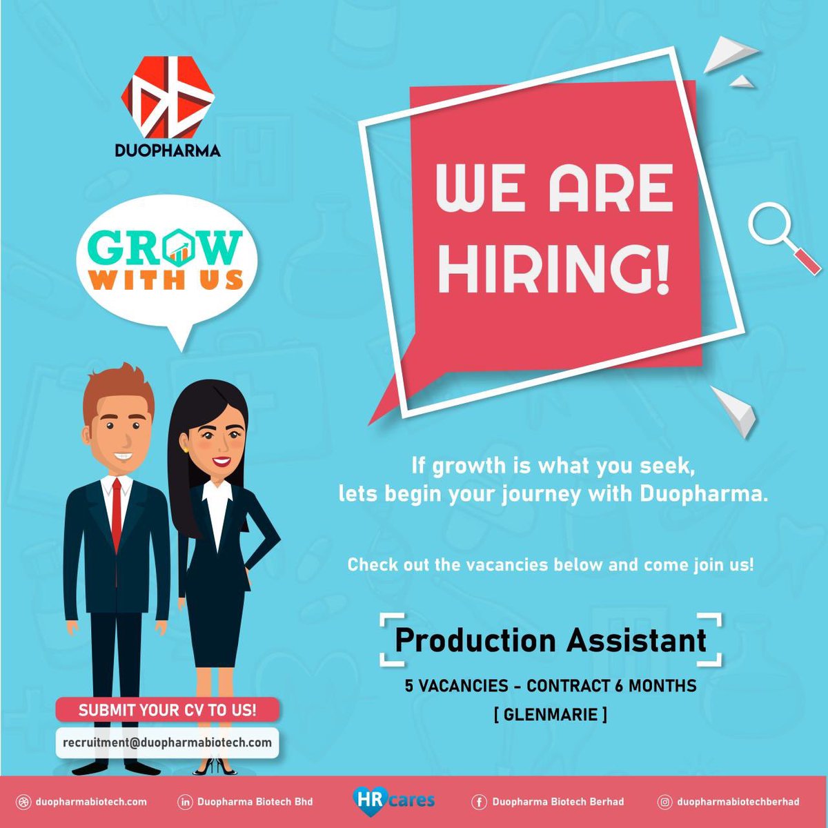 Getme Hired On Twitter Duopharma Biotech Berhad Is Hiring Production Assistant 5 Vacancies In Glenmarie Shah Alam Contract For 6 Months Interested Send You Cv To Recruitment Duopharmabiotech Com Https T Co Ekjhm8p3im